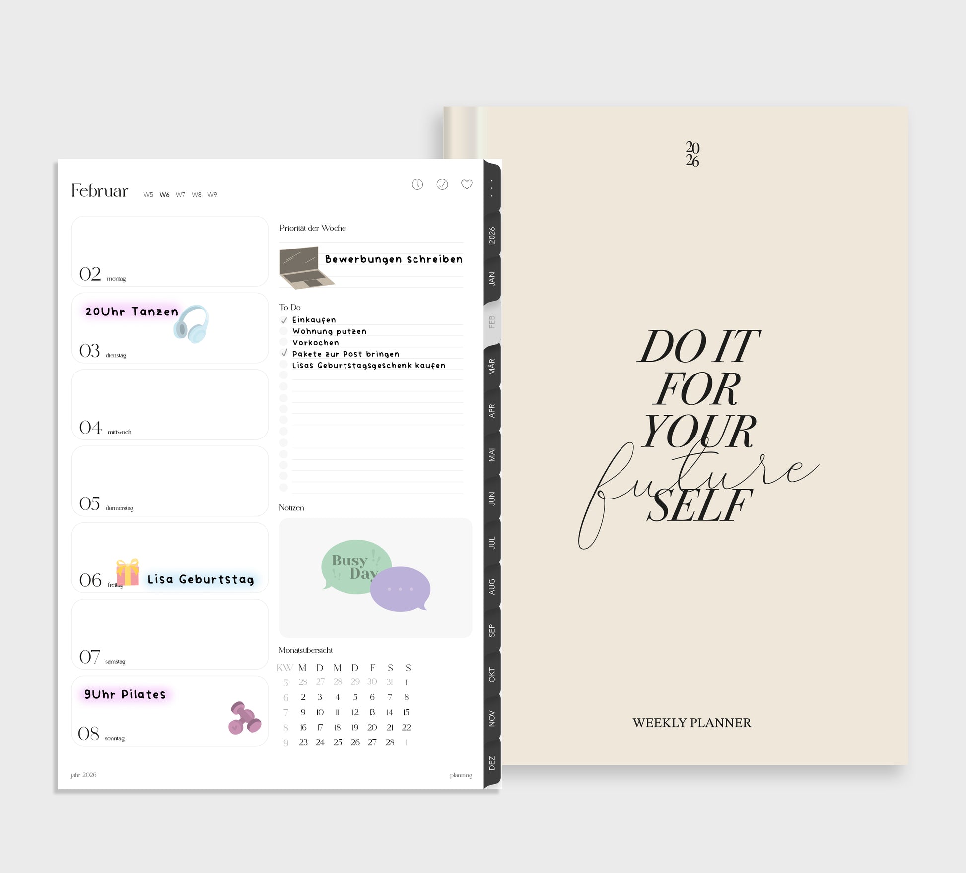 Der Planer ist ausschließlich für die persönliche Nutzung bestimmt. Kommerzielle Nutzung, Weitergabe und Verkauf sind nicht gestattet. Es handelt sich hierbei um ein digitales Produkt, du bekommst kein physisches Produkt zugeschickt.